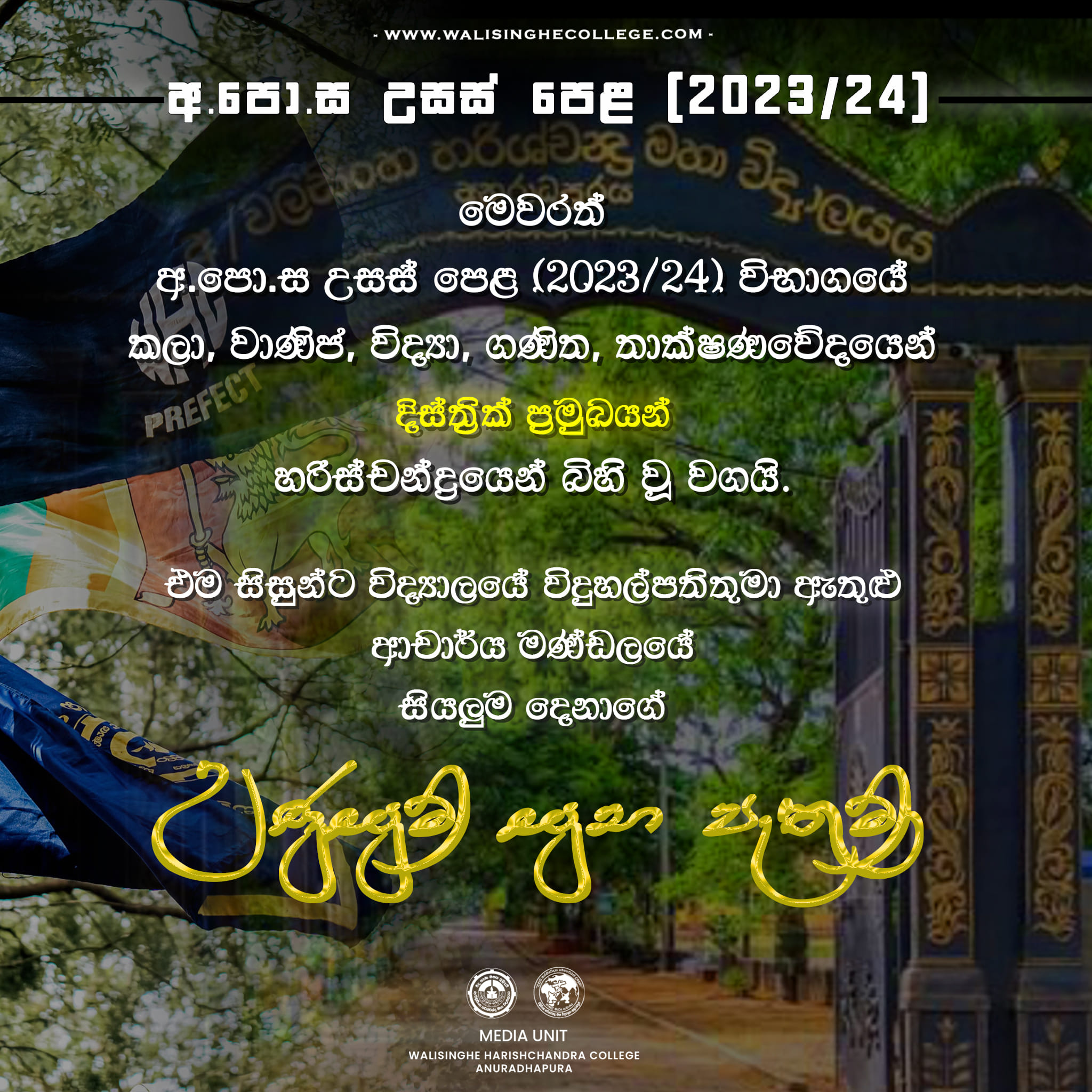 අපොස උසස් පෙළ 2023 (2024) කලා, වාණිජ, විද්යා, ගණිත සහ තාක්ෂණවේදය දිස්ත්රික් ප්රමුඛයන්!